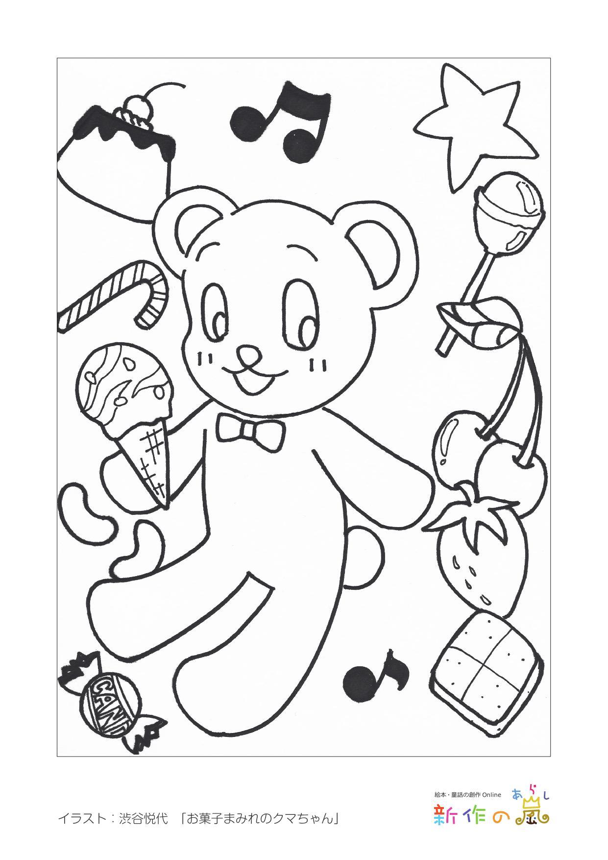 塗り絵_渋谷悦代01_菓子まみれのクマちゃん
