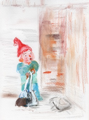 「もうすぐ工場から、今年の分のクリスマスプレゼントが、どっさり、届くぞ。その前に、ちゃんと、おそうじ、しておかなくちゃ」
